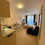Acest apartament, este dotat cu cu chicinetă cu aparate pentru a pregăti propriile mâncăruri. Dacă nu aveți chef să gătiți după o zi plină, la Djanny, la mai puțin de 1.2 km de această proprietate, se servesc preparate din bucătăria din Europa Centrală. De asemenea, oaspeții pot lua un autobuz la stația de autobuz Arda, situată la doar 10 minute de mers pe jos, pentru a explora restul orașului Sunny Beach.